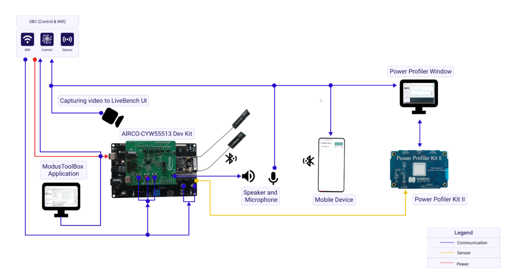 The Lab primarily helps in evaluating the power consumption of the CYW55513 AIROC Wi-Fi & Bluetooth Combo Audio Development Kit.
