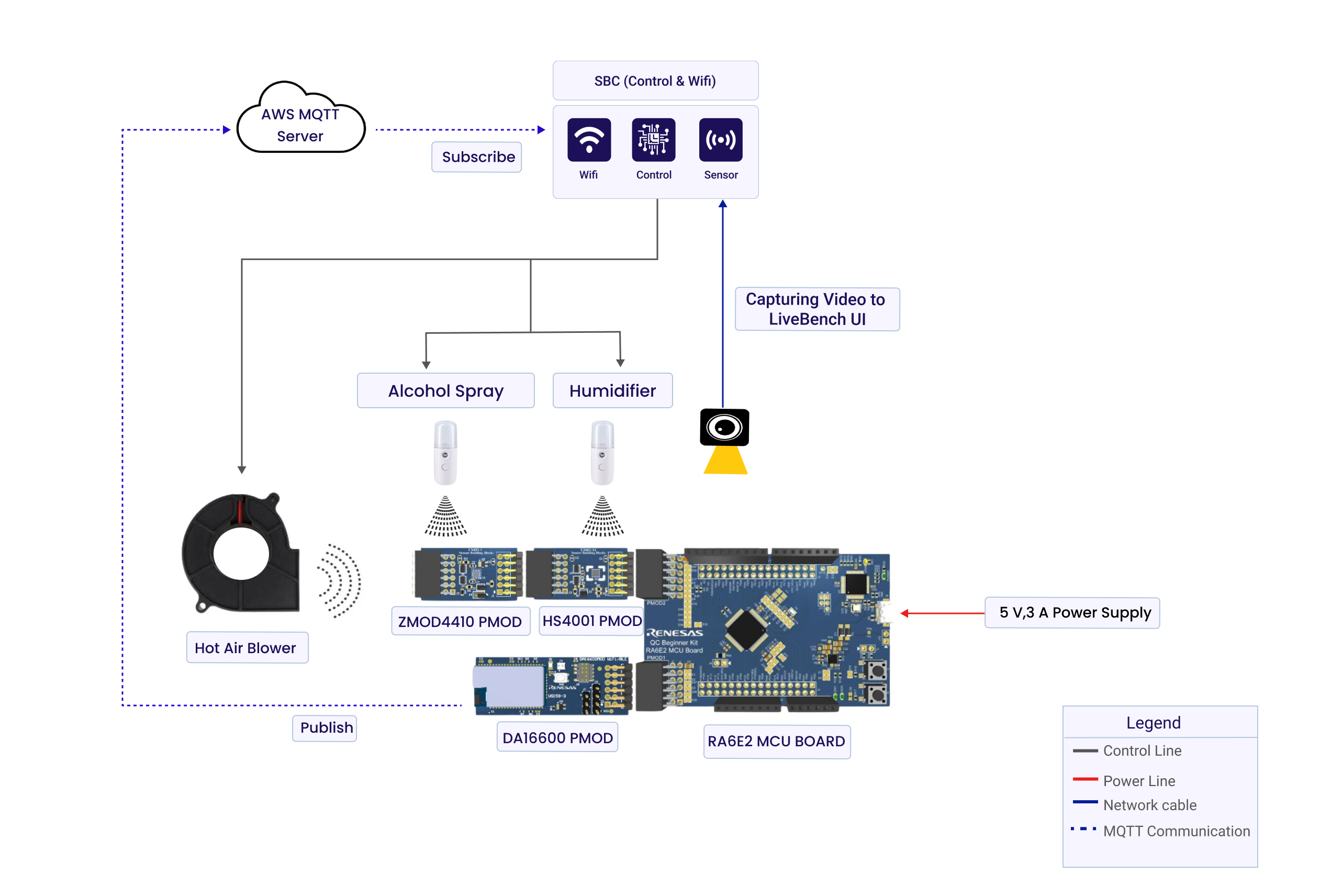 This combination of the QuickConnect Beginners Kit demonstrates the “sensor mode operation” functionality, making use of the RA series MCU (RA6E2) along with the below sensor chips in combination with the software: