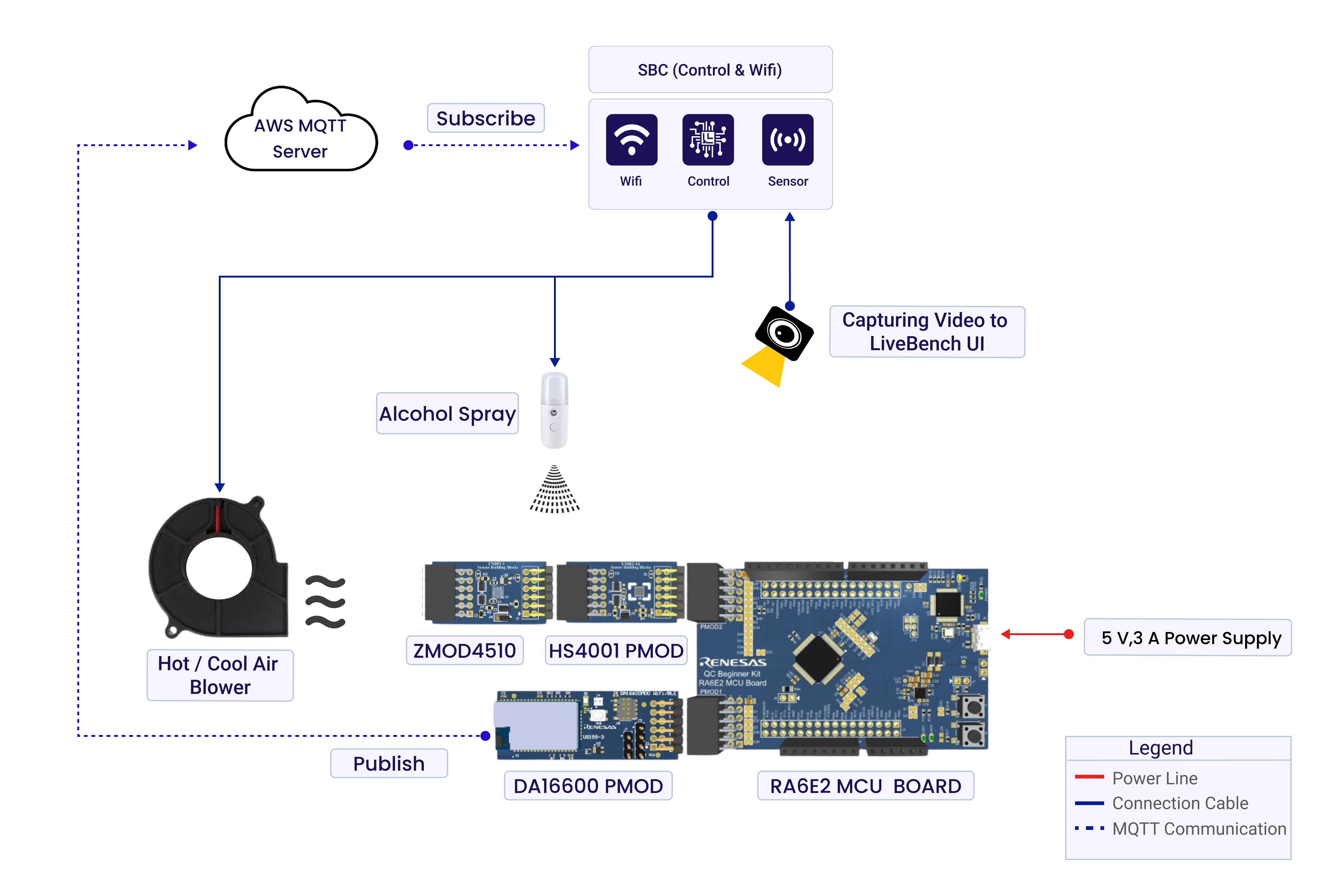 This combination of the QuickConnect Beginners Kit demonstrates the “sensor mode operation” functionality, making use of the RA series MCU (RA6E2) along with the below sensor chips, in combination with the software: